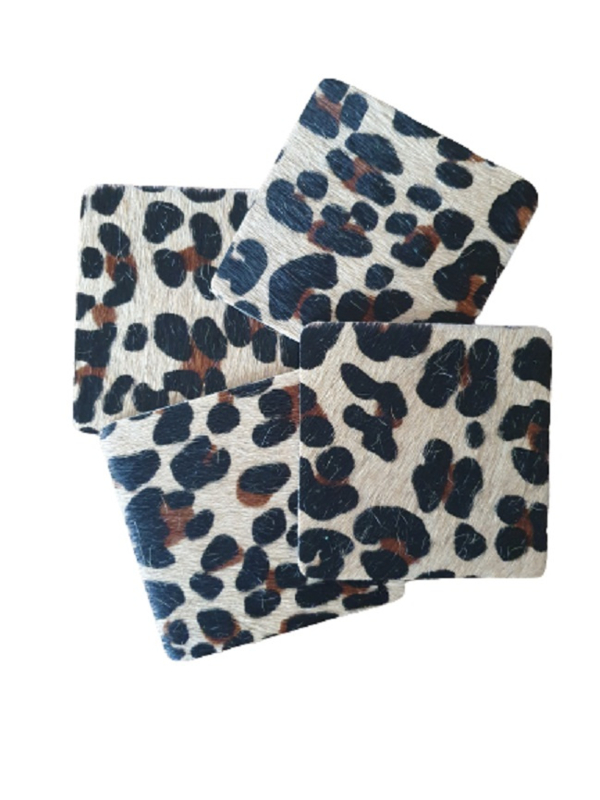 Voorkom kringen op uw tafel met deze leren panter print (koeienhuid) onderzetters.