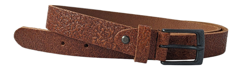 Artikelnummer: 3.011 IP cognac OverzichtStijlvolle cognac leren damesriem met unieke print.