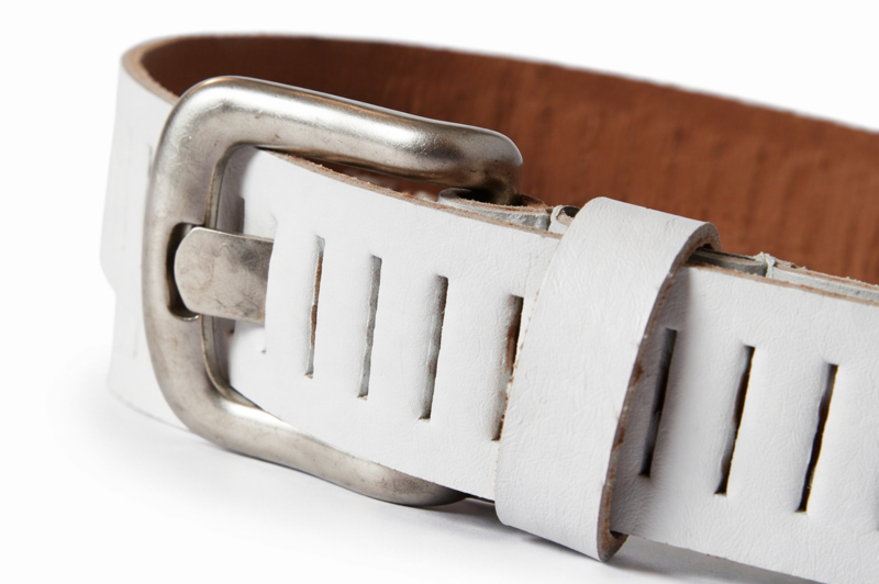 Artikelnummer: 3.037 OverzichtWitte leren heren riem 3 cm stoere jeans riem met fijne sleufjes.