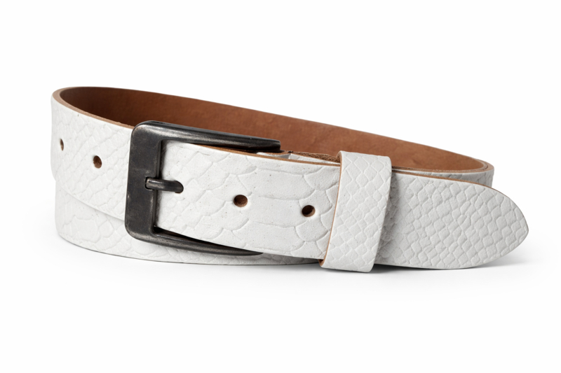 Witte Leren Herenriem 4 cm met Slangenprint