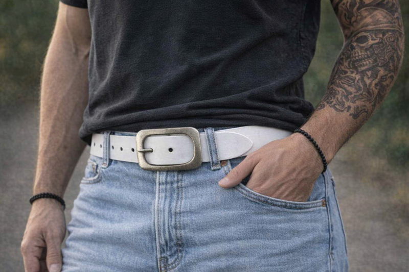 Bestel jouw witte lederen herenriem.